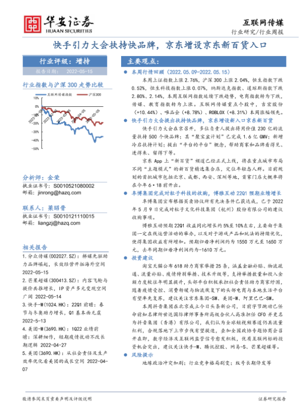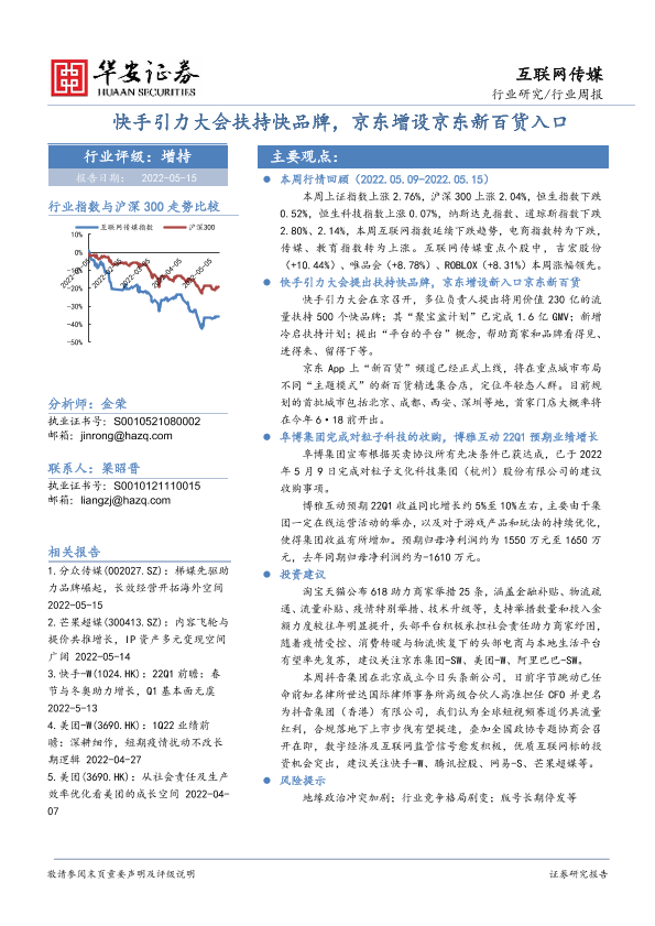 【华安证券】【20220515】互联网传媒行业周报:快手引力大会扶持快品牌,京东增设京东新百货入口-16页