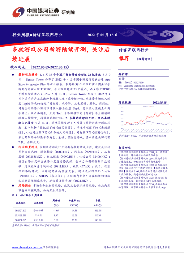 【银河证券】【20220515】传媒互联网行业周报:多款游戏公司新游陆续开测,关注后续进展-35页