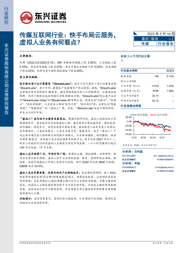【东兴证券】【20220516】传媒互联网行业:快手布局云服务,虚拟人业务有何看点?-11页