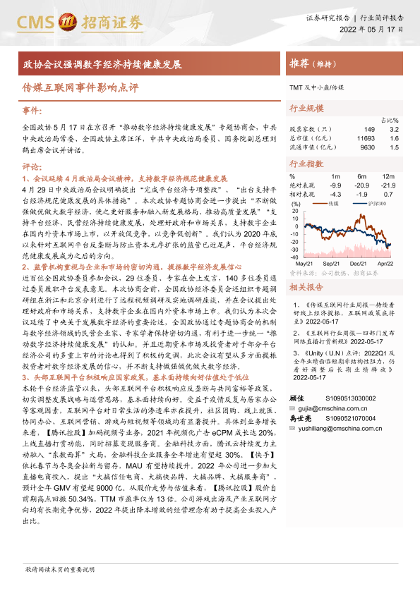 【海通证券】【20220517】传媒互联网事件影响点评:政协会议强调数字经济持续健康发展-3页