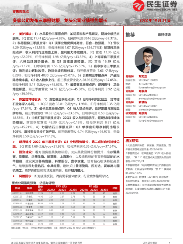 【民生证券】【20221031】零售周观点:多家公司发布三季报财报,龙头公司业绩强势增长-29页