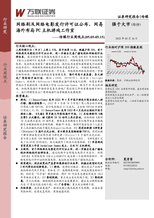 【万联证券】【20220516】网络剧及网络电影发行许可证公布,网易海外布局PC主机游戏工作室-13页