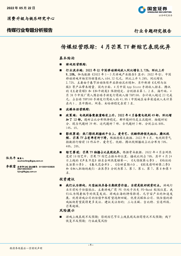 【国金证券】【20220522】传媒经营跟踪:4月芒果TV新综艺表现优异-17页