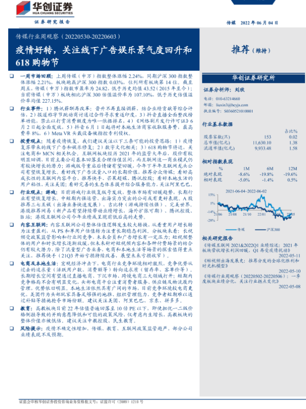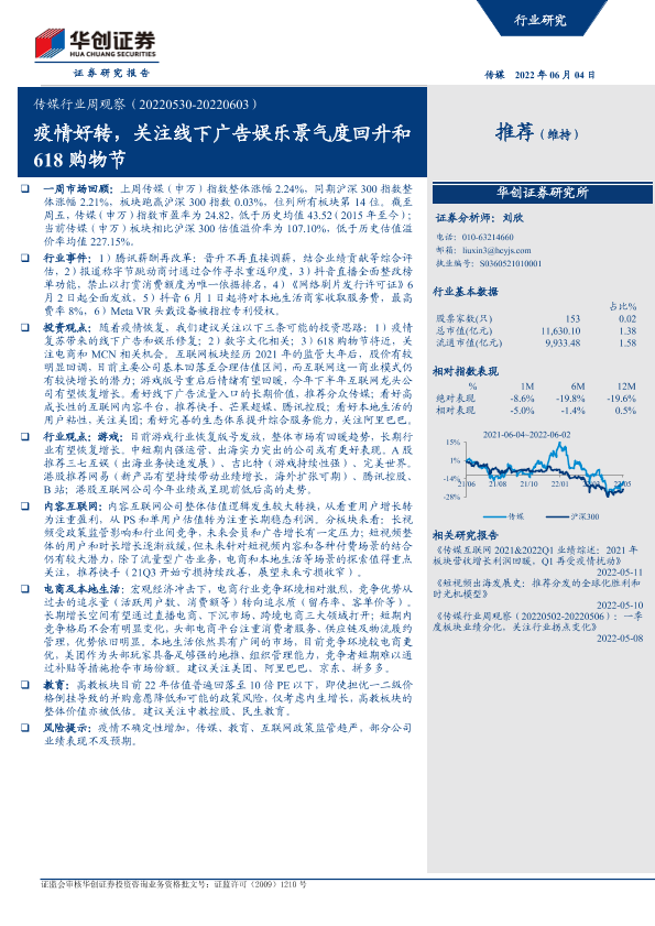 【华创证券】【20220604】传媒行业周观察:疫情好转,关注线下广告娱乐景气度回升和618购物节-23页