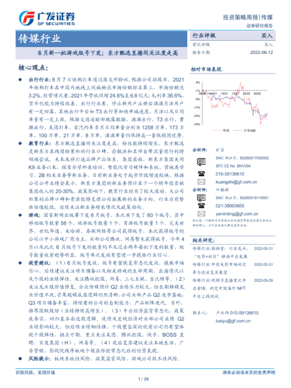 【广发证券】【20220612】6月新一批游戏版号下发;东方甄选直播间关注度走高-24页
