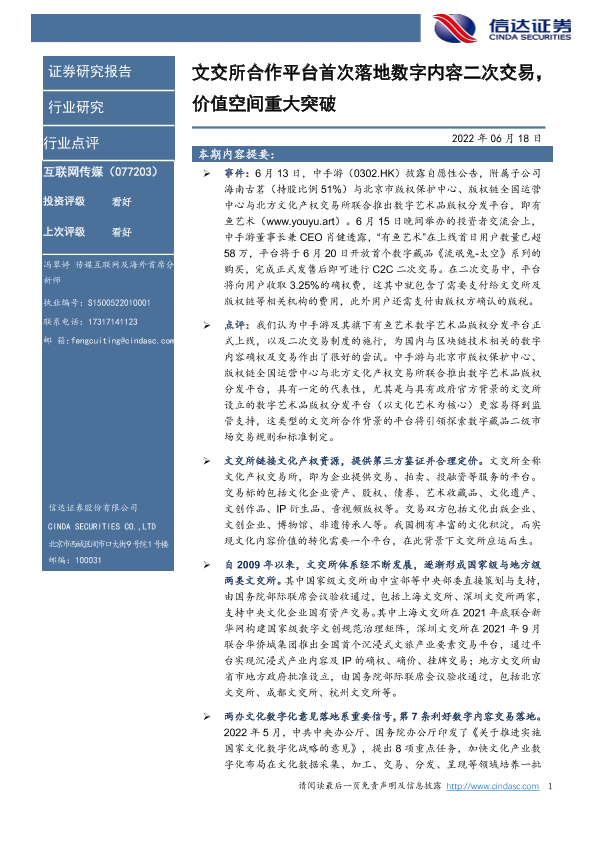 【信达证券】【20220618】文交所合作平台首次落地数字内容二次交易,价值空间重大突破-10页
