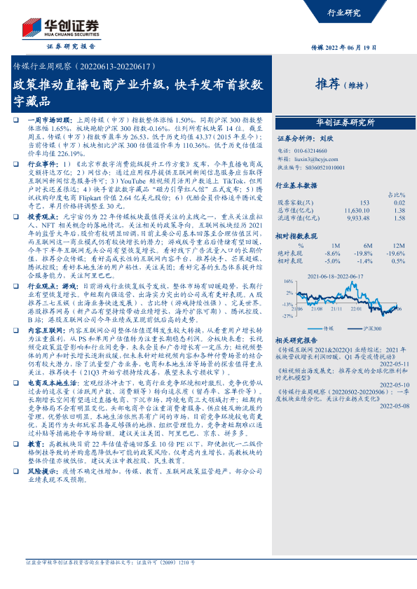 【华创证券】【20220619】传媒行业周观察:政策推动直播电商产业升级,快手发布首款数字藏品-23页