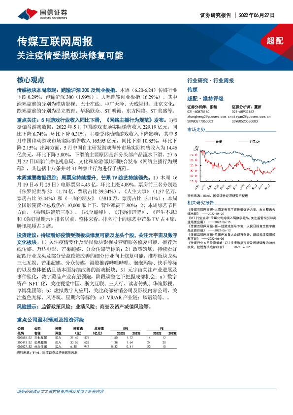 【国信证券】【20220627】传媒互联网周报:关注疫情受损板块修复可能-19页