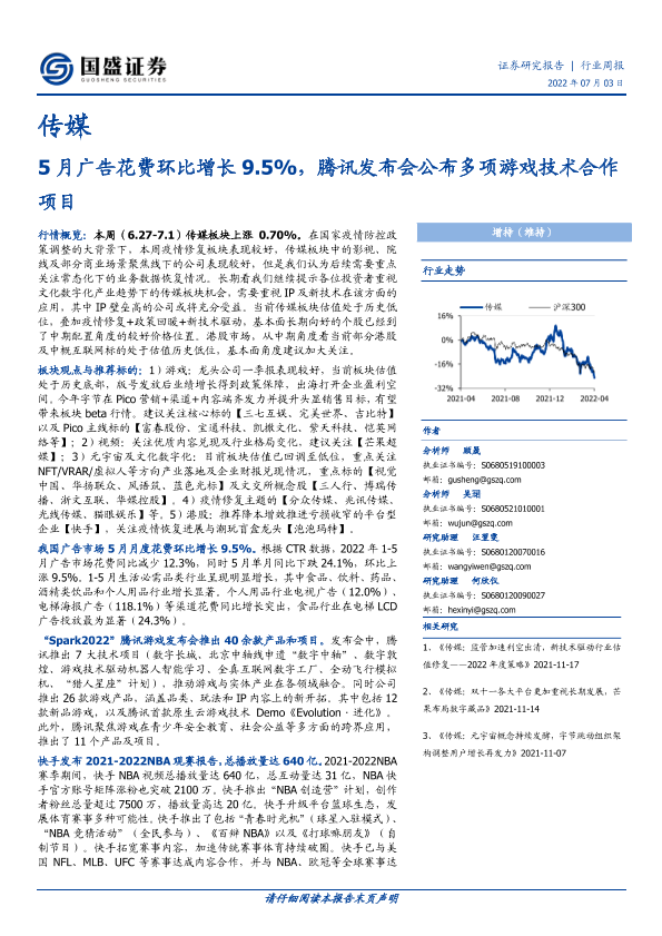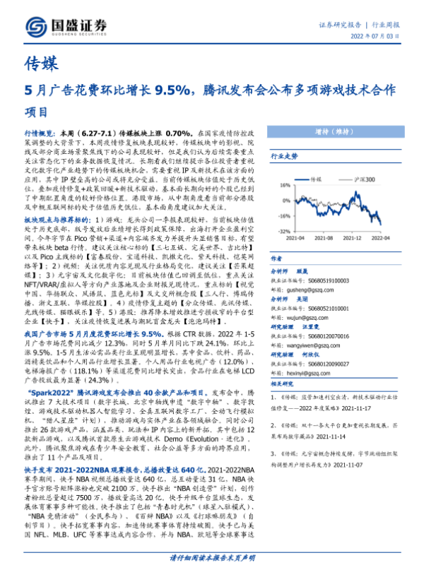 【国盛证券】【20220703】5月广告花费环比增长9.5%,腾讯发布会公布多项游戏技术合作项目-12页