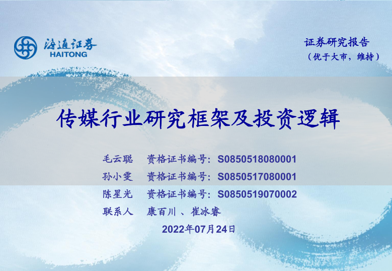 【海通证券】【20220724】传媒行业研究框架及投资逻辑-36页