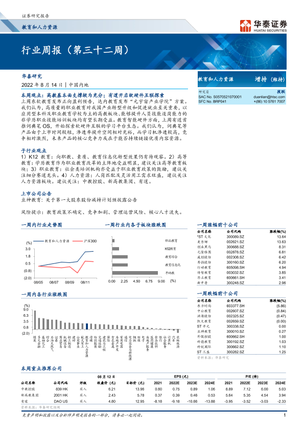 【华泰证券】【20220814】教育和人力资源行业周报(第三十二周)-14页