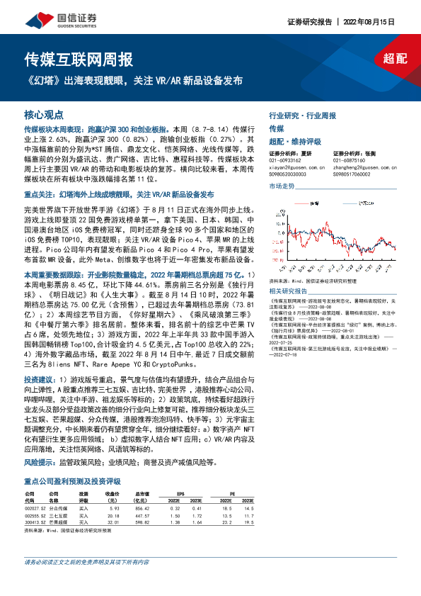 【国信证券】【20220815】传媒互联网周报:《幻塔》出海表现靓眼,关注VR AR新品设备发布-20页