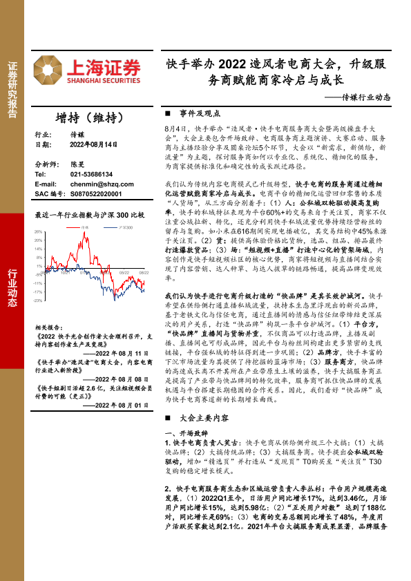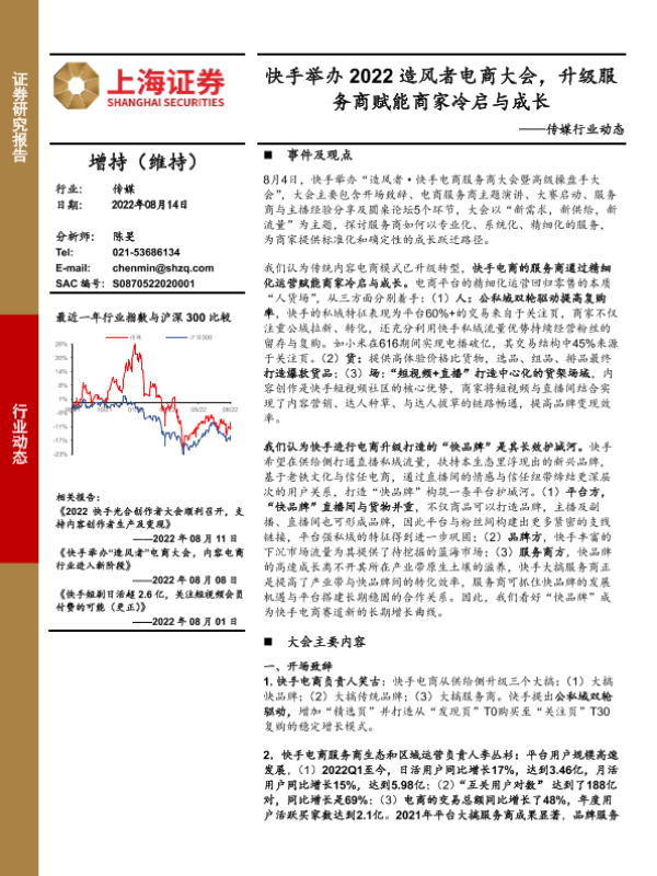 【上海证券】【20220814】快手举办2022造风者电商大会,升级服务商赋能商家冷启与成长-6页