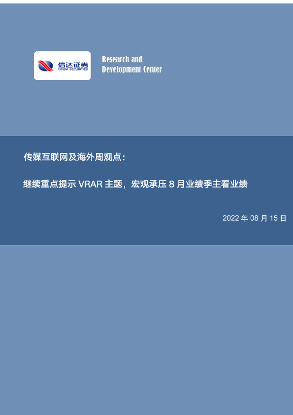 【信达证券】【20220815】传媒互联网及海外周观点:继续重点提示VRAR主题,宏观承压8月业绩季主看业绩-24页