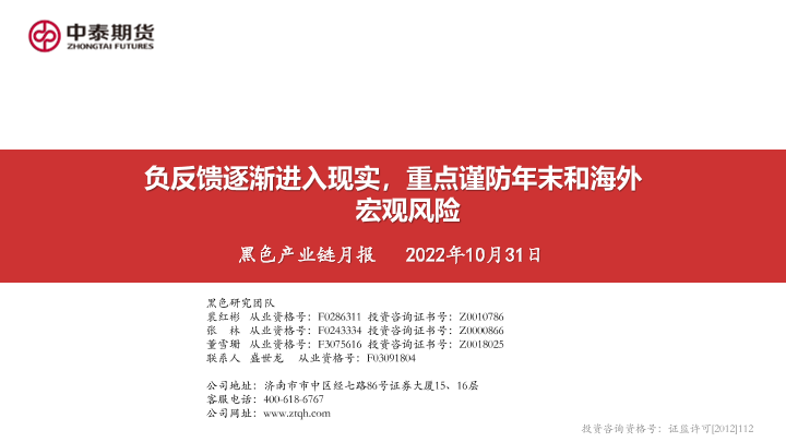 【中泰期货】【20221031】黑色产业链月报:负反馈逐渐进入现实,重点谨防年末和海外宏观风险-151页