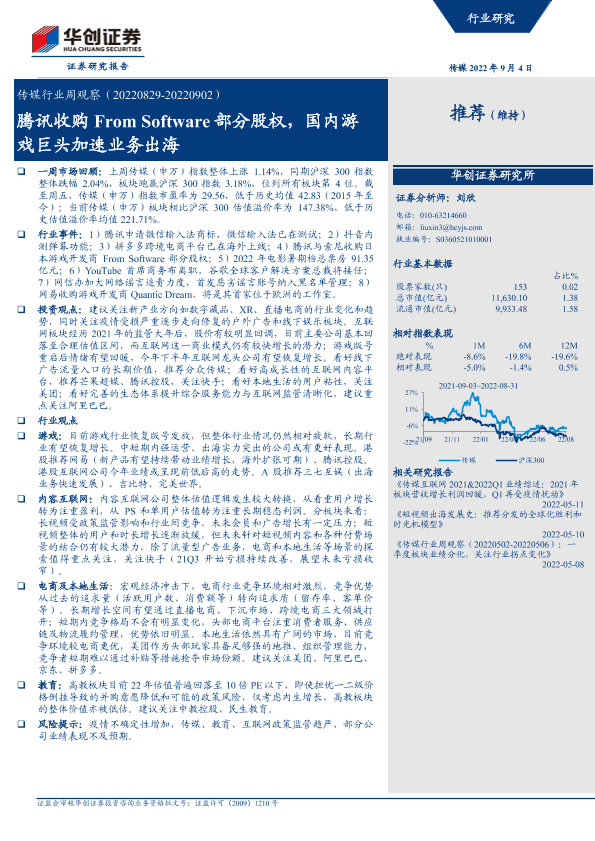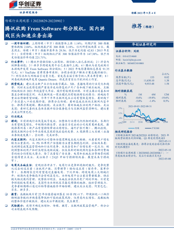 【华创证券】【20220904】传媒行业周观察:腾讯收购From Software部分股权,国内游戏巨头加速业务出海-21页