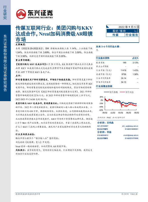 【东兴证券】【20220905】传媒互联网行业:美团闪购与KKV达成合作,Nreal加码消费级AR眼镜市场-10页