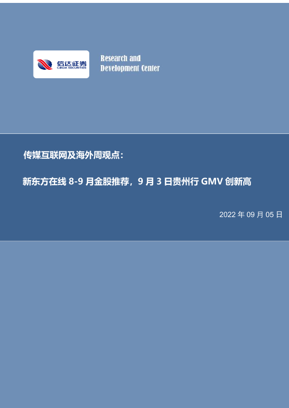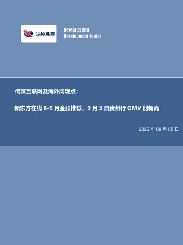 【信达证券】【20220905】新东方在线8-9月金股推荐,9月3日贵州行GMV创新高-24页