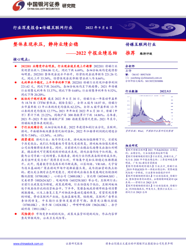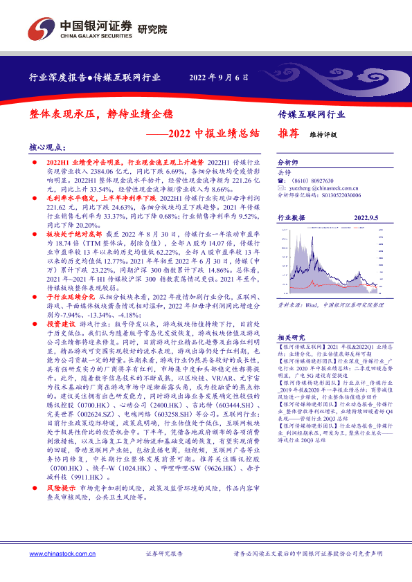 【银河证券】【20220906】传媒互联网行业2022中报业绩总结-16页