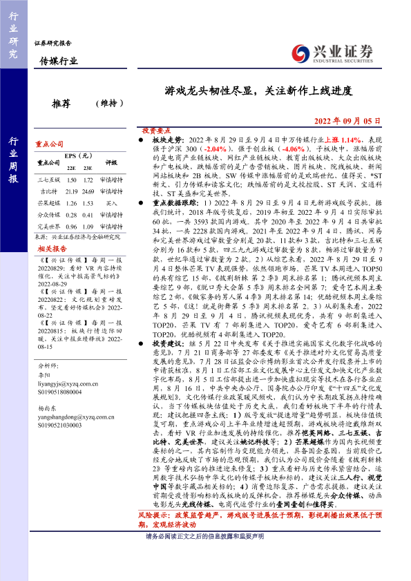 【兴业证券】【20220905】游戏龙头韧性尽显,关注新作上线进度-22页