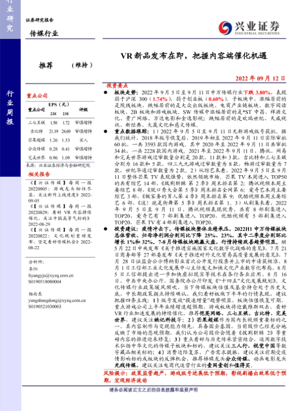 【兴业证券】【20220912】VR新品发布在即,把握内容端催化机遇-23页