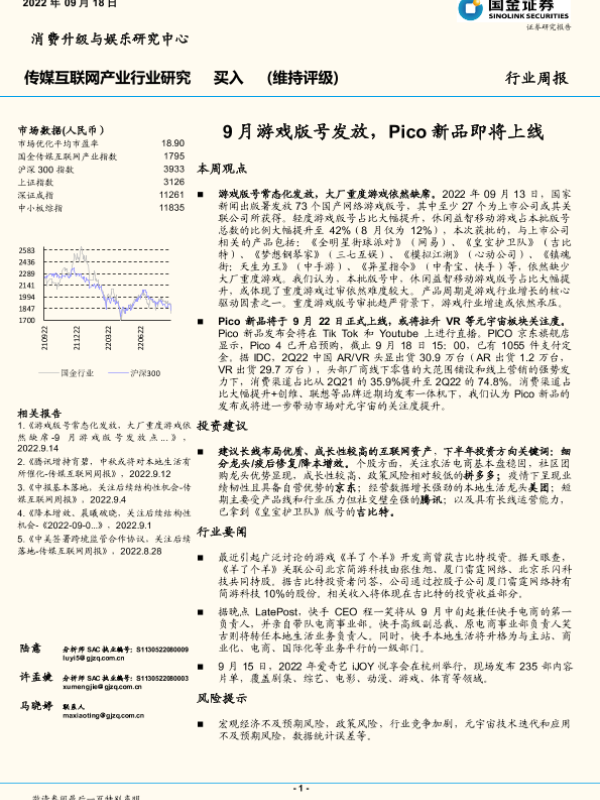 【国金证券】【20220918】9月游戏版号发放,Pico新品即将上线-22页
