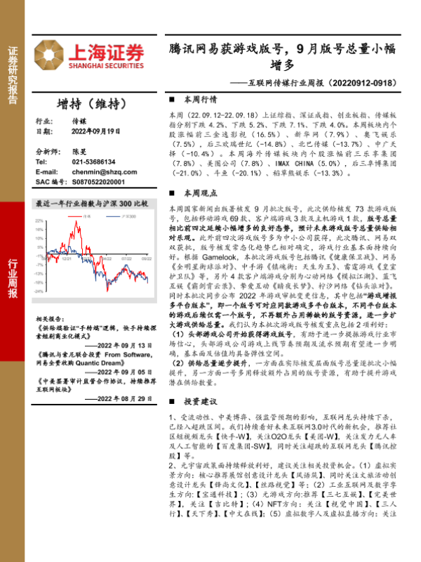 【上海证券】【20220919】互联网传媒行业周报:腾讯网易获游戏版号,9月版号总量小幅增多-24页