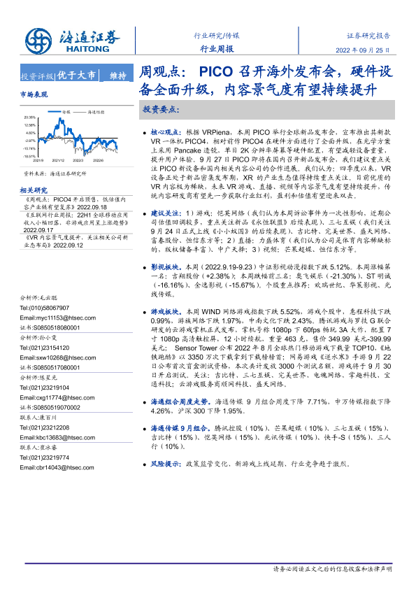 【海通证券】【20220925】PICO召开海外发布会,硬件设备全面升级,内容景气度有望持续提升-10页