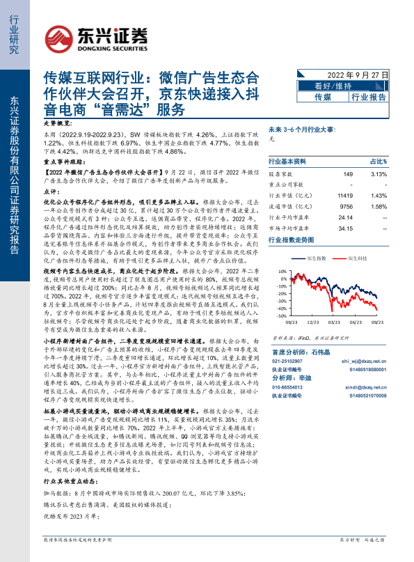 【东兴证券】【20220927】传媒互联网行业:微信广告生态合作伙伴大会召开,京东快递接入抖音电商“音需达”服务-13页