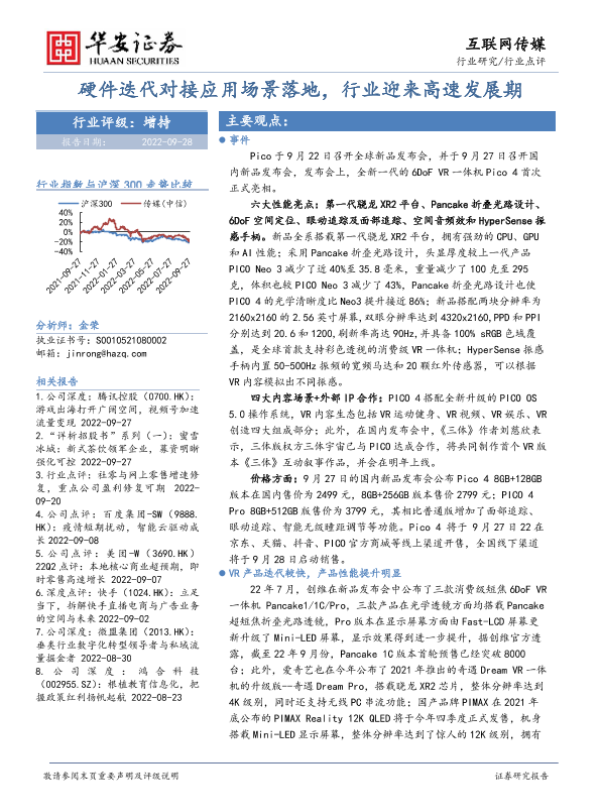 【华安证券】【20220928】互联网传媒行业点评:硬件迭代对接应用场景落地,行业迎来高速发展期-12页