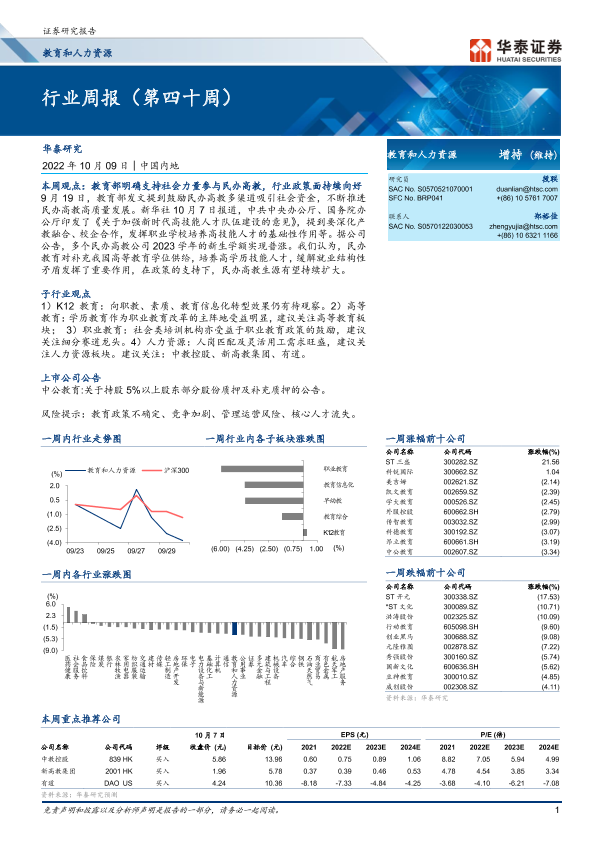 【华泰证券】【20221009】教育和人力资源行业周报(第四十周)-19页