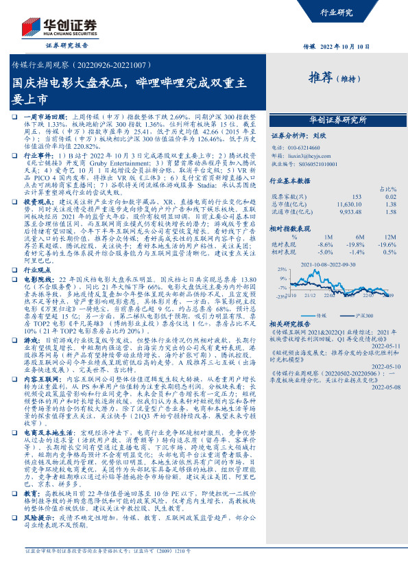 【华创证券】【20221010】传媒行业周观察:国庆档电影大盘承压,哔哩哔哩完成双重主要上市-21页