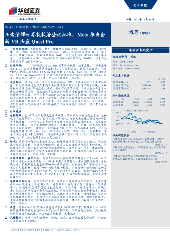 【华创证券】【20221016】传媒行业周观察:王者荣耀世界获软著登记批准,Meta推出全新VR头盔Quest Pro-19页