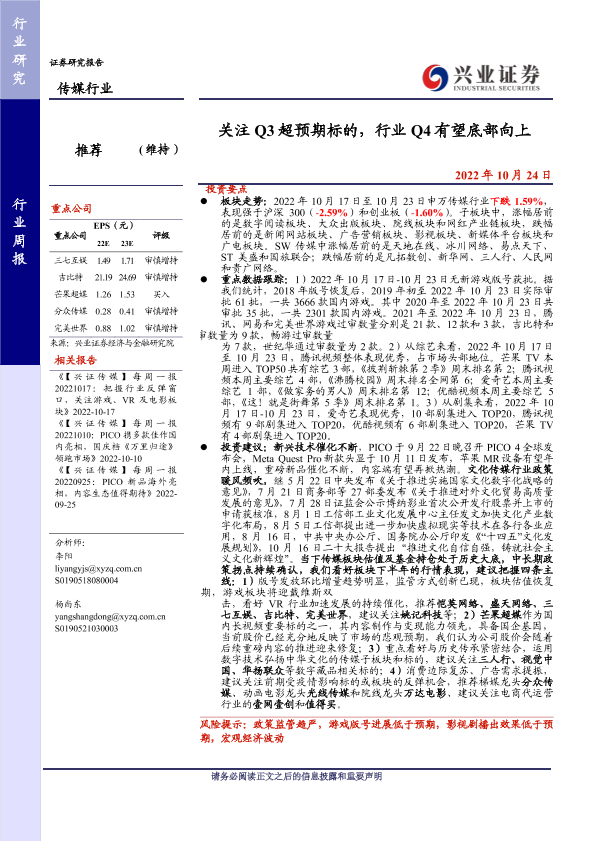 【兴业证券】【20221024】关注Q3超预期标的,行业Q4有望底部向上-22页