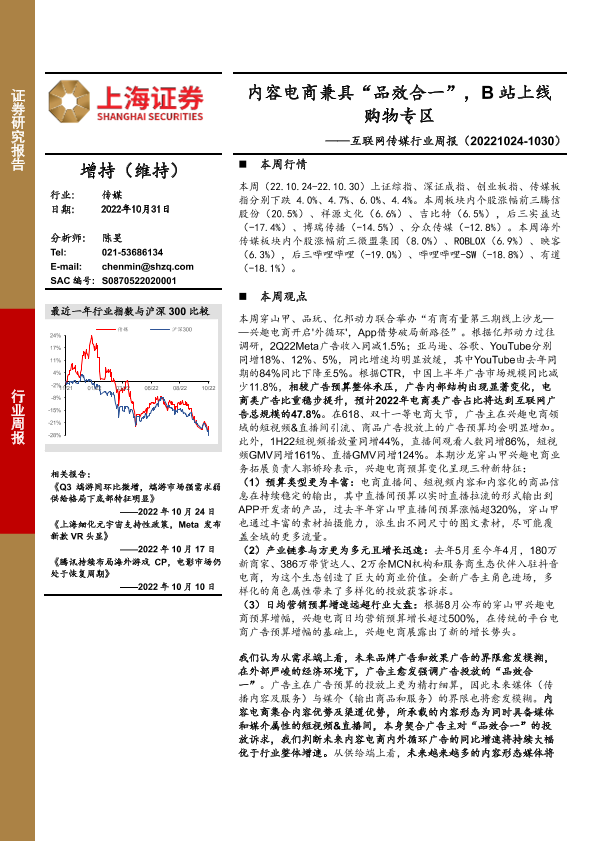 【上海证券】【20221031】互联网传媒行业周报:内容电商兼具“品效合一”,B站上线购物专区-24页