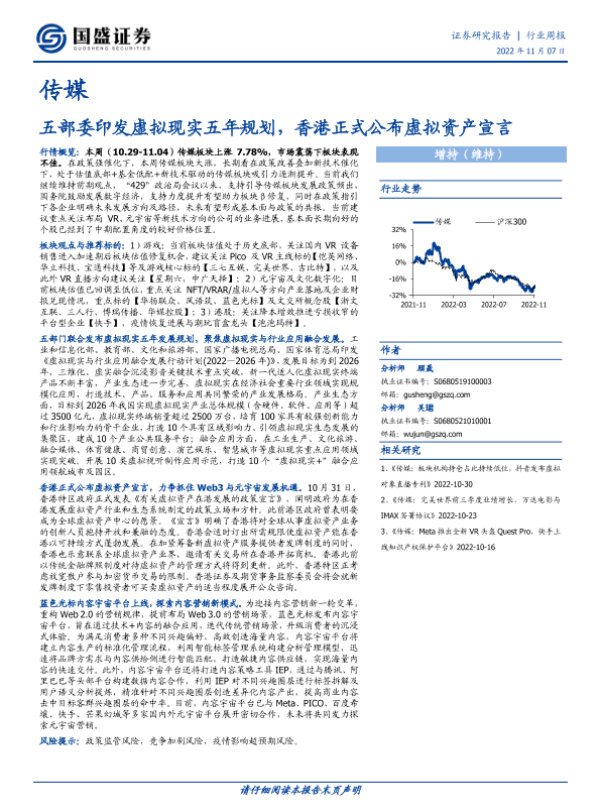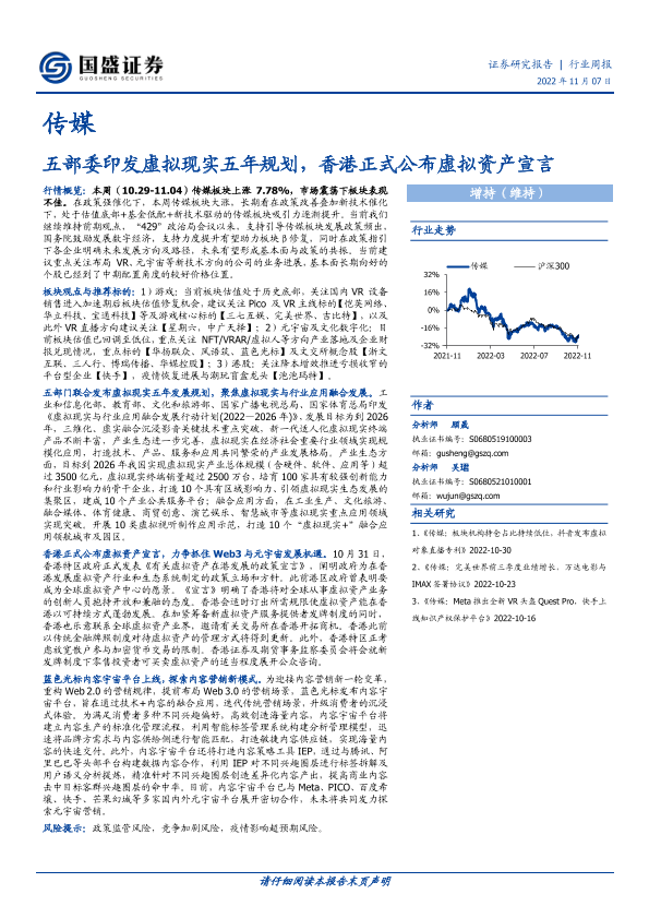 【国盛证券】【20221107】五部委印发虚拟现实五年规划,香港正式公布虚拟资产宣言-10页
