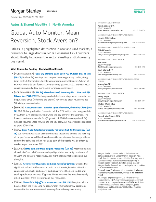 【Morgan Stanley】【20221024】Global Auto Monitor Mean Reversion, Stock Aversion?-19页