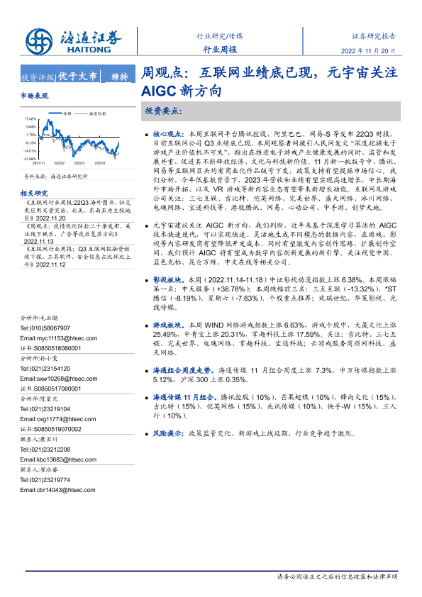 【海通证券】【20221120】互联网业绩底已现,元宇宙关注AIGC新方向-10页
