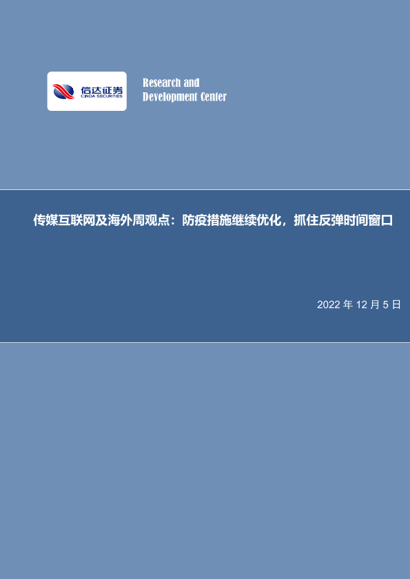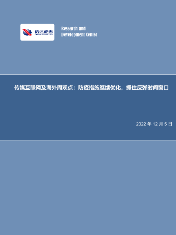 【信达证券】【20221205】传媒互联网及海外周观点:防疫措施继续优化,抓住反弹时间窗口-26页