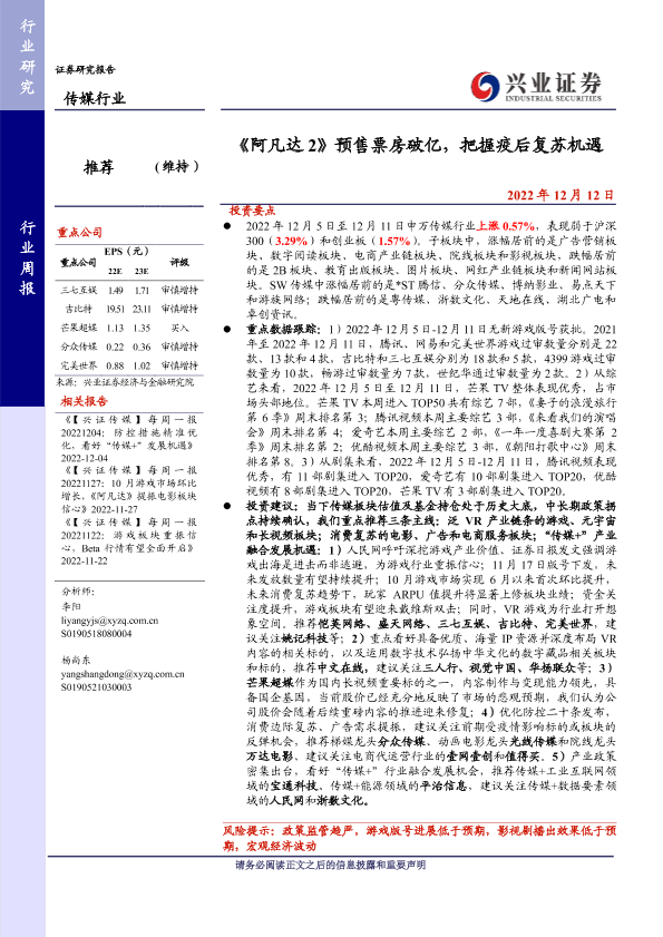 【兴业证券】【20221212】《阿凡达2》预售票房破亿,把握疫后复苏机遇-21页