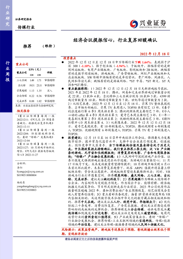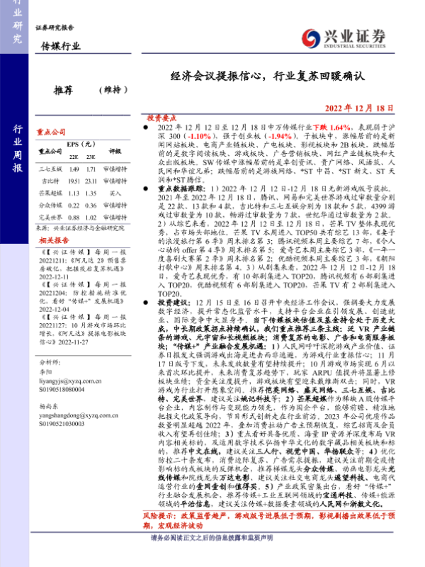 【兴业证券】【20221218】经济会议提振信心,行业复苏回暖确认-22页