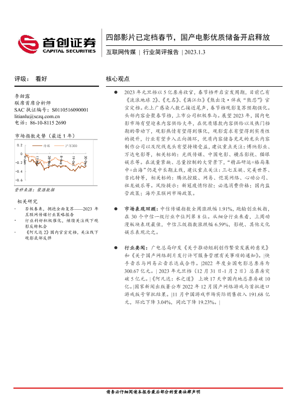 【首创证券】【20230103】四部影片已定档春节,国产电影优质储备开启释放-12页