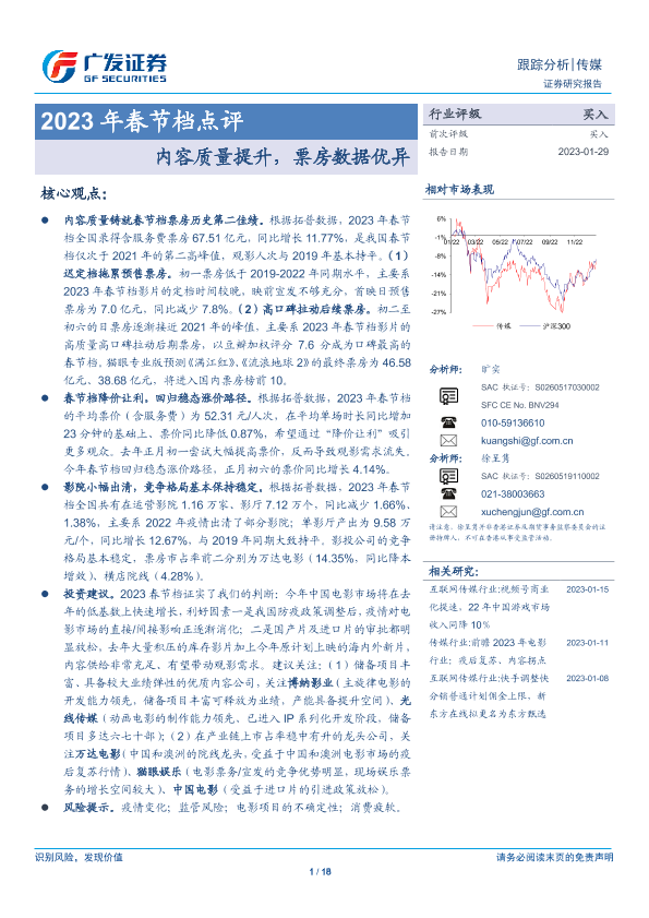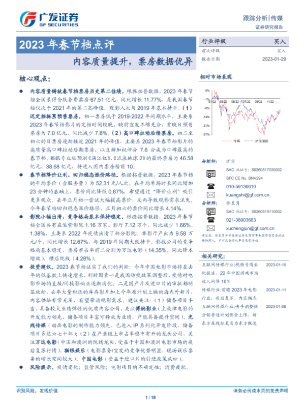 【广发证券】【20230129】2023年春节档点评:内容质量提升,票房数据优异-18页