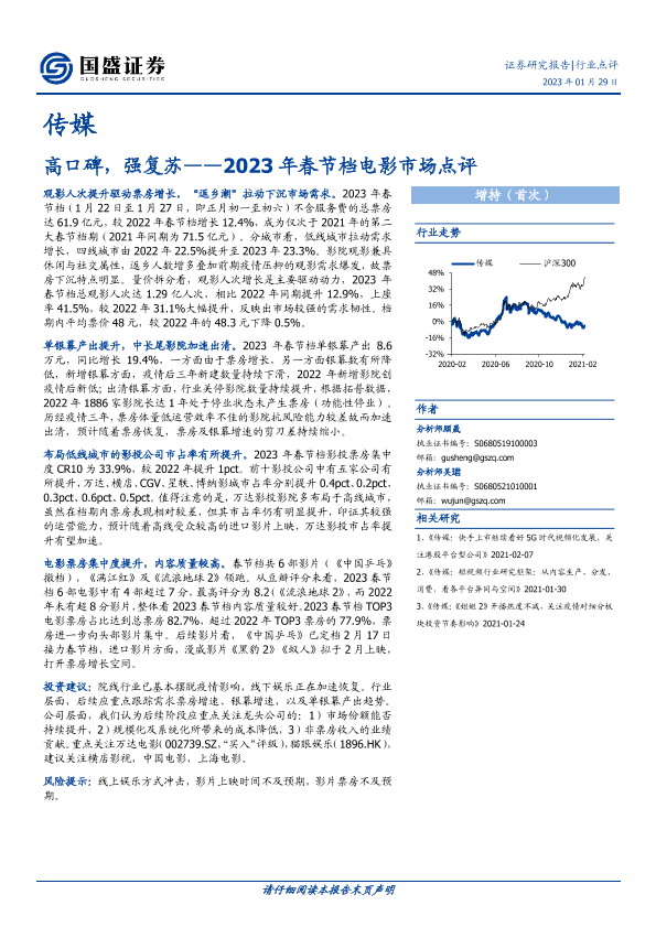 【国盛证券】【20230129】2023年春节档电影市场点评:高口碑,强复苏-14页