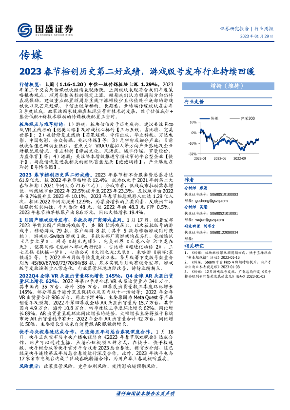 【国盛证券】【20230129】2023春节档创历史第二好成绩,游戏版号发布行业持续回暖-11页