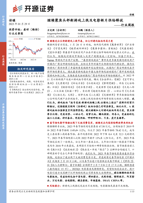 【开源证券】【20230129】继续聚焦头部新游戏上线及电影新片供给释放-15页