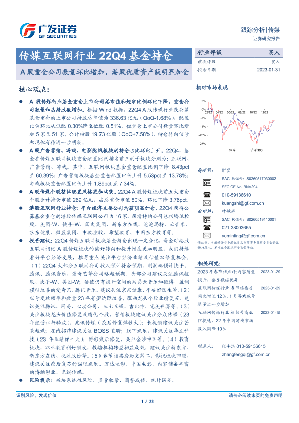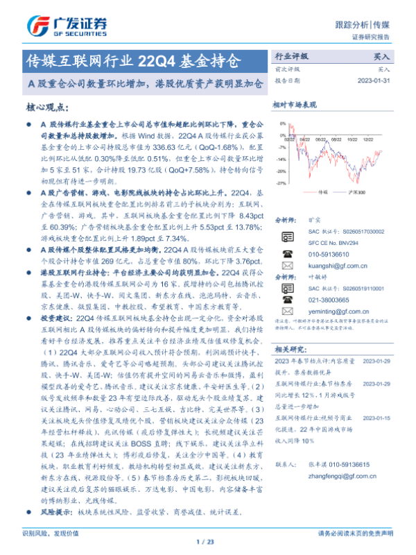 【广发证券】【20230131】传媒互联网行业22Q4基金持仓-23页