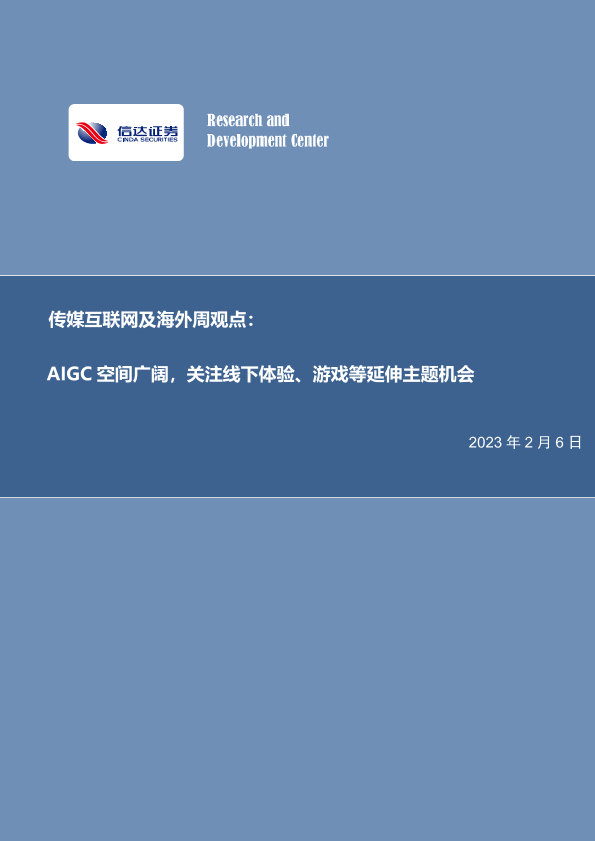 【信达证券】【20230206】AIGC空间广阔,关注线下体验、游戏等延伸主题机会-22页