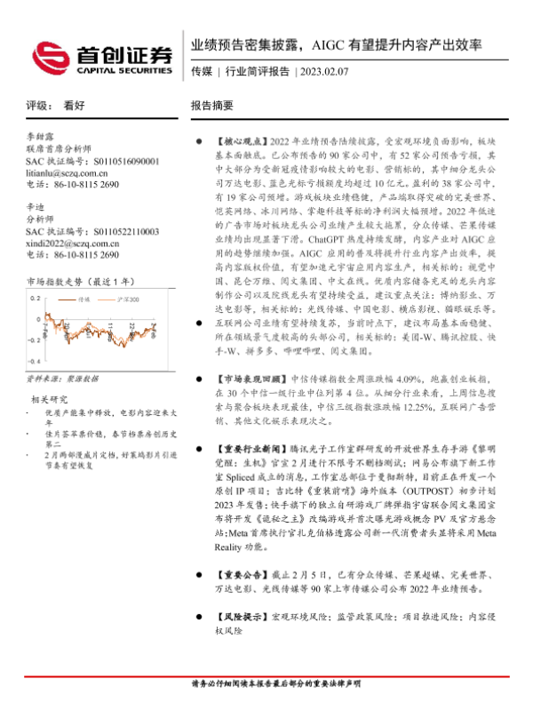 【首创证券】【20230207】业绩预告密集披露,AIGC有望提升内容产出效率-12页