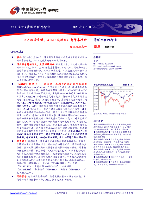 【银河证券】【20230210】2月版号发放,AIGC或助力厂商降本增效-10页